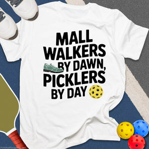 From the food court to the courts-court, this tee is for picklers who *double-step* into their day! Mall Walkers By Dawn, Picklers By Day is the ultimate funny retirement pickleball t-shirt for legends keeping pace and crushing dinks.